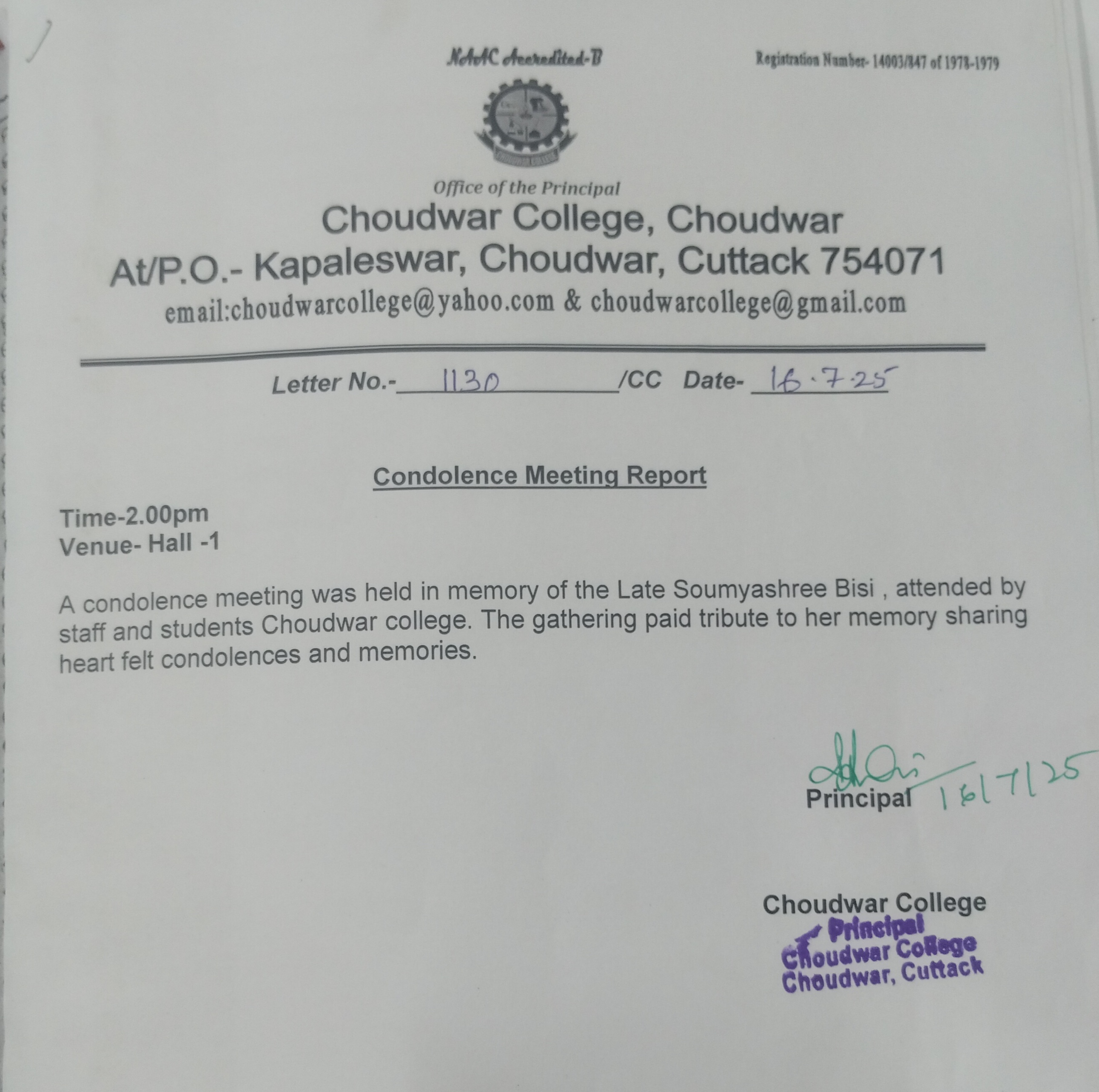 ≫ <div>A Blood donation camp was held on dt. 08.08.25 in Choudwar College campus.</div><div>22 units blood has been collected.</div>